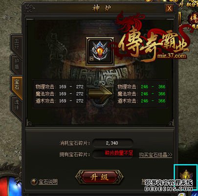 然后推荐大家提升神炉里面的宝石等级,宝石可以大幅度地提高人物的攻击力,宝石碎片可以通过打BOSS掉落,也可以从一些活动里面获得,比如每日的充值活动,还有VIP的等级奖励,其次的就是魂珠了,魂珠主要提高人物的暴击率和暴击伤害,是PK的时候想爽快地秒人的首选属性,魂珠主要获得途径跟宝石差不多,都是参加活动或者商城购买,剩余的护盾跟血符因为无法直接使用元宝购买的,所以先不急着提升,护盾的话每天通过材料副本天空之城的双倍奖励就可以获得比较多的了,血符可以通过平时的挂机打怪慢慢累积。